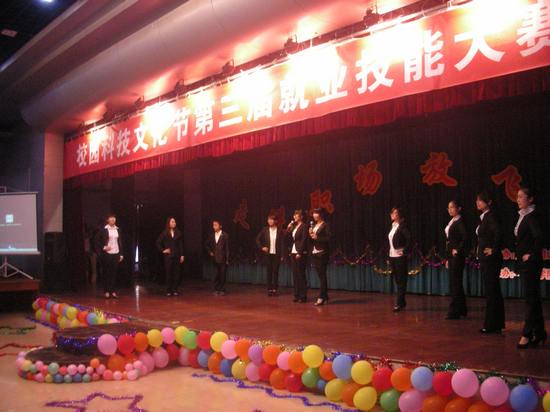 在主持人隆重介绍了比赛评委和到场嘉宾,校园科技文化节第三届就业技能大赛正式拉开决赛帷幕。经过前期初赛、复赛的激烈角逐,最终入围决赛的八位选手依次亮相,他们容光焕发,展现了气宇轩昂的精神面貌及从容不迫的参赛信心。接着,选手正式开始实力比拼:通过VCR播放展示“真我风采”,以情景剧表演阐述“我的职场”,在面试中直面求职机遇,勇于挑战。风格迥异的VCR展示,将选手的生活状态体现的淋漓尽致。情景剧从不同的角度展现了参赛选手严谨认真的工作态度和注重做人的生活作风。在充满机遇又不乏挑战的面试现场,面对评委高难度的提问,选手们语言干练,睿智作答,博得了赢得了评委嘉宾的赞许和台下观众的阵阵掌声。比赛气氛紧张但又不乏活力。