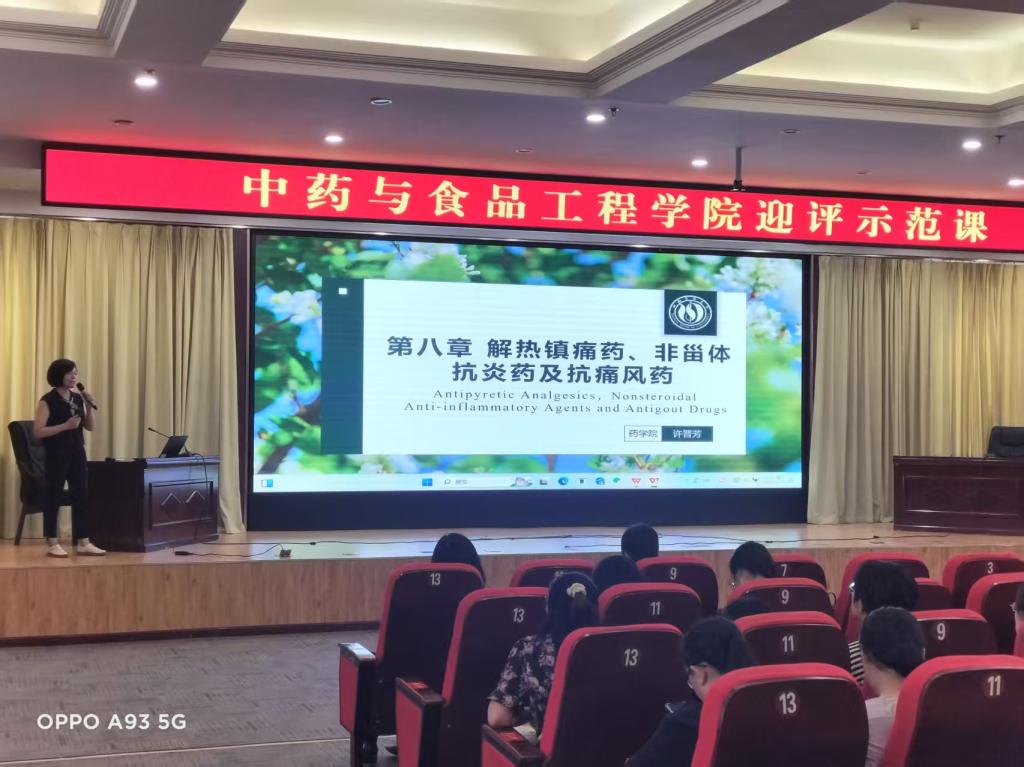 许晋芳副教授展示的是“解热镇痛药、非甾体抗炎药及抗痛风药”,过程中将科学前沿、课程思政、临床应用与专业基础知识有机融合,让课堂无形中得到升华。