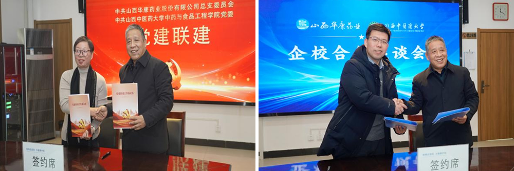 在华康药业,参观了现代化中药生产线与质量控制中心,双方就共建实习实践基地、人才培养、共建实训中心进行了深入座谈。赵瑞宝介绍了学院的党建工作,并对华康药业在实习实践基地建设方面的工作给予肯定,希望双方通过联学共建更好地服务于健康山西事业,实现合作共赢。杜晨晖介绍了学院在学科建设与人才培养方面的特色与成果,希望实现课程内容与职业标准、教学过程与生产过程的紧密结合。裴科就科研方面表示,学院将积极发挥在中药、食品等领域的科研优势,瞄准企业生产实际需求,希望实现科研助力企业发展。