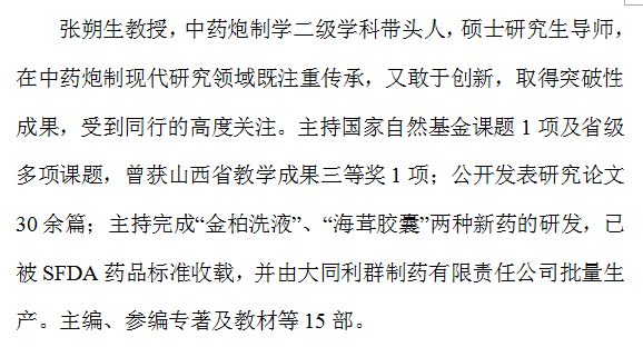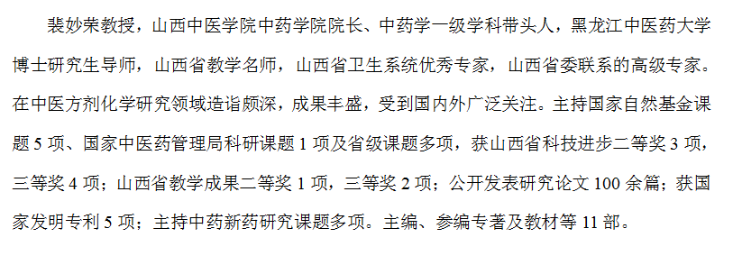 山西中医学院中药学一级学科 招收学术型和专业型硕士研究生介绍