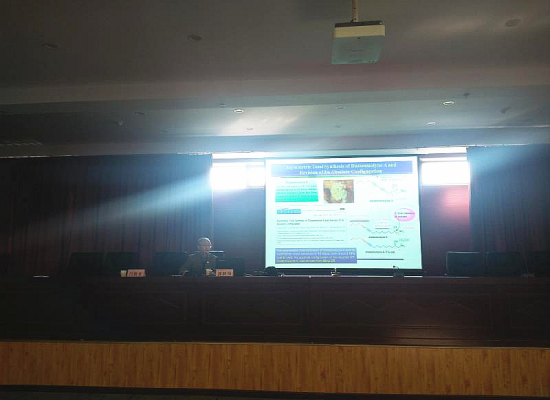郭跃伟教授长期致力于中国海洋生物中生物活性成分的研究,取得系统和创新的成果。讲座初始,郭教授向在场各位对其所在中国科学院上海药物研究发展背景及天然药物研发的现状进行了简单的介绍,并结合自身工作,对海洋软体生物及新药事业发展向各位进行了详细介绍。他讲到,其团队率先在国内开展近年来国际前沿和热点领域所关注的对海洋软体动物与其食源生物的化学生态学研究,分离得到许多活性化合物,且其中的许多活性化合物都是首次发现的,并对研究成果发表了数篇学术论文,科研工作达到国际先进水平。郭跃伟教授讲述了团队成员率先在国内开展研究海洋植物红树林的经历,丰富了天然产物化学研究对象,带动国内很多单位开展相似的研究,形成了近年国内天然产物研究的一个热点,起到了领航标的作用。郭教授也强调到海洋生物资源的丰富性为药物研发提供了可能性,希望大家在注重小分子药物的研究发展。