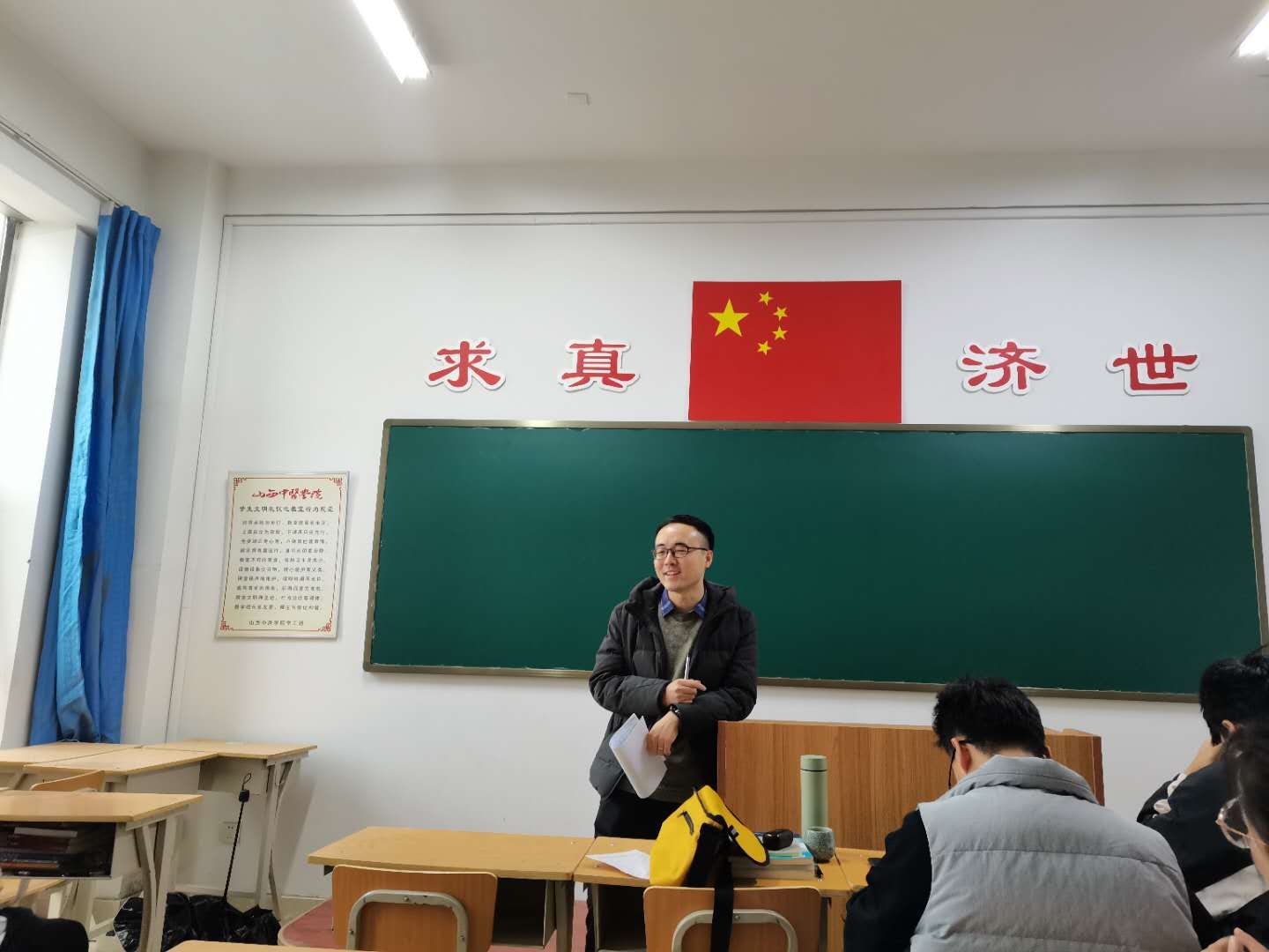 此次心理班会由兼职辅导员刘玉杰老师主持举行,临床中药班全体同学系数在场。
