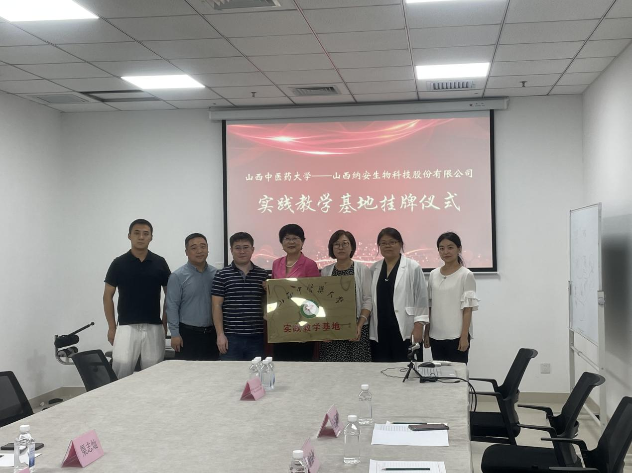 2021年9月14日上午买球官方网站与山西纳安生物科技股份有限公司举行实践教学基地协议签署及挂牌活动,买球官网买球官方网站党委庞维荣教授、副院长王颖莉教师、学系主任李睿教授,企业渠志灿董事长及李晓君总经理参加仪式。