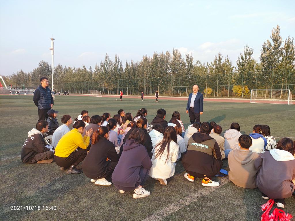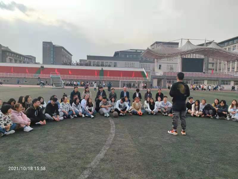 2021年10月18日,2020级药茶班在杏林体育场走出教室、走下网络、走向操场主题班会买球官方网站党委副书记梁峰岗出席,分团委全体专职辅导员参加,班会由药茶班导员孟喆主持