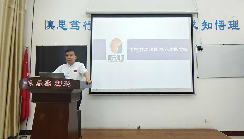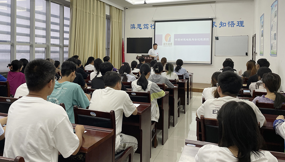 振东集团董事长李安平以“中药材道地性与全过程质控”为题为同学们讲解了中药生产线车间的生产流程及产品质量、安全的检验步骤。他鼓励同学们要在实践中认真学习,刻苦钻研,在实践的过程中加深对专业知识的理解,进一步提高分析问题解决问题的能力,提升专业素质,提高专业水平。