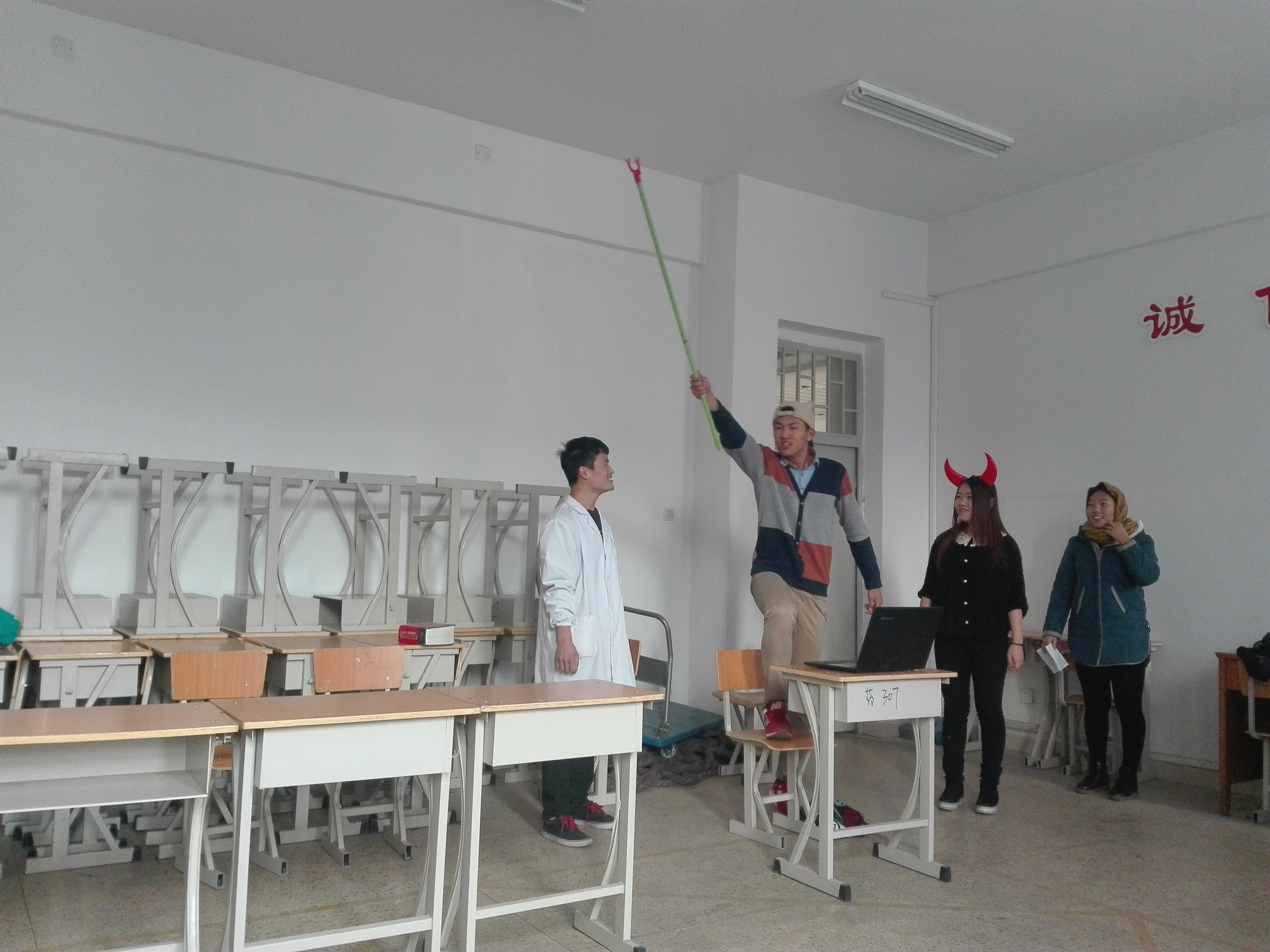 为激发学生热情,活跃学院气氛,推广校园文化,促进学生健康成长,2016年11月25日中午12点30分,由买球官网文艺部承办的心理话剧于和剂书院甲座307教室进行复审,辅导员李龙、孟喆,任婧和王小敏老师以及学生会副主席徐雪源和各部部长担任本次活动评委。