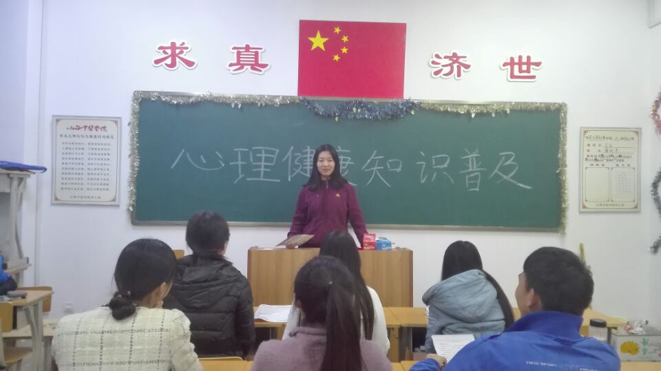 众所周知健康的心理是大学生成功的基石,是大学生寻求广阔发展空间,适应社会变化的必要条件。为促进大学生心理健康发展,进一步掌握必备的心理健康知识,引导大学生关注心理发展、悦纳自我、珍惜生命,提高大学生心理健康水平,构建和谐校园,14级食品科学与工程2班于2016年11月24日星期四在和剂书院甲座208教室特别开展此次普及心理健康知识的活动。