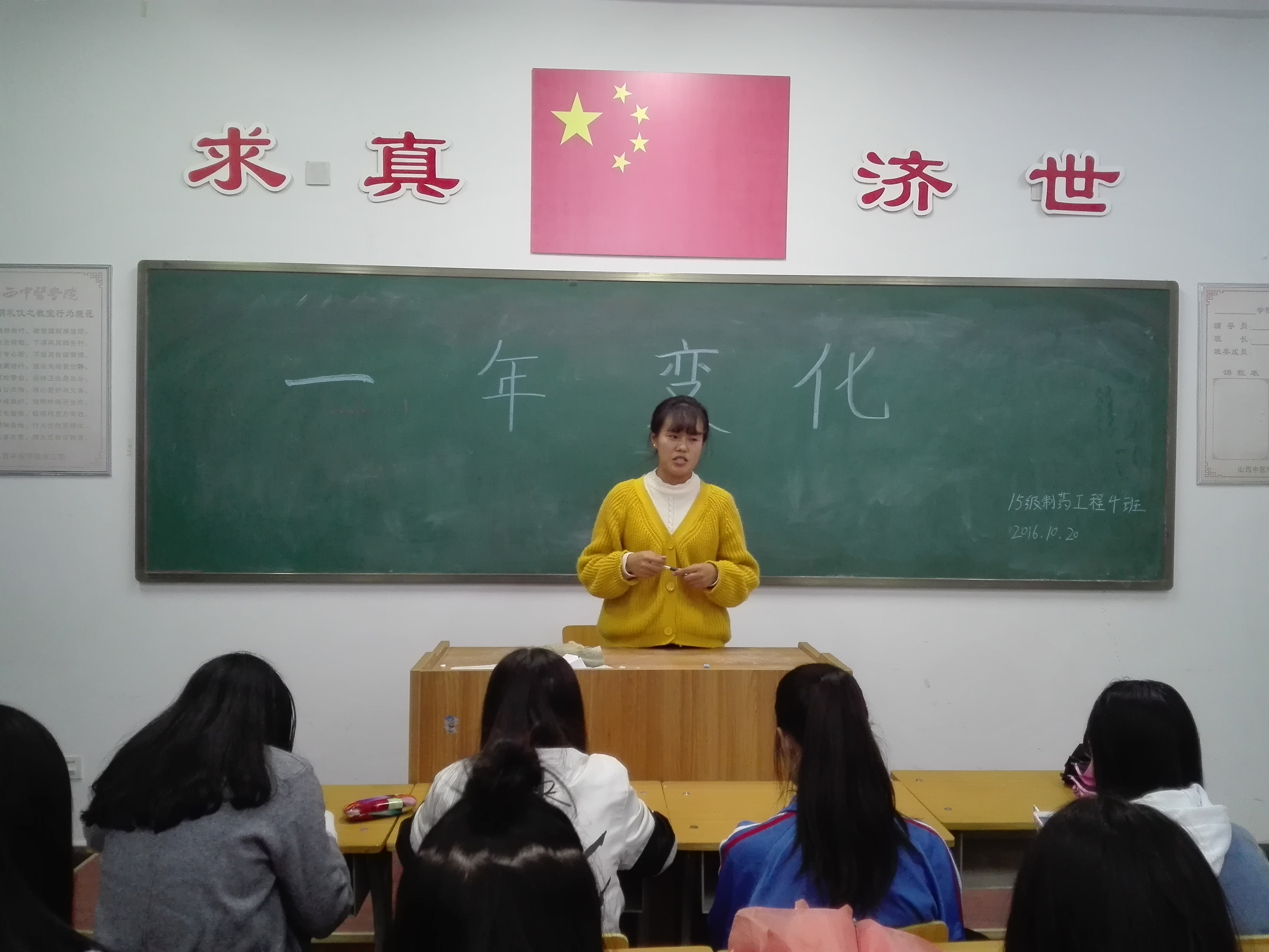 2016年10月24日,15级制药工程四班与仁爱书院408教室举办了“一年变化”主题心理活动。会议由心理委员组织,15级制药工程四班全体成员参加了此次会议。