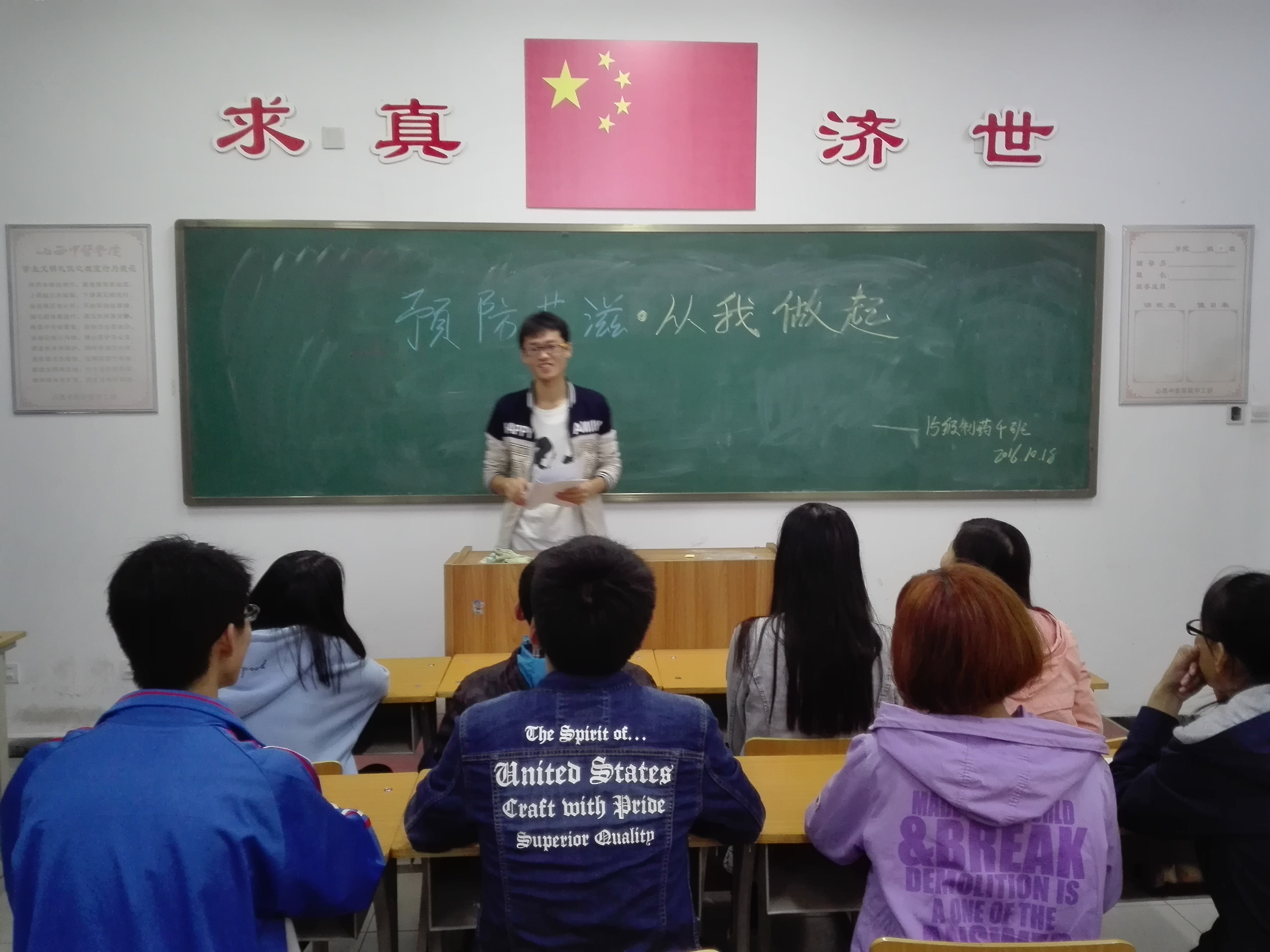 2016年10月18日,15级制药工程四班举办了“预防艾滋,从我做起”主题团日活动。此次活动由班级团小组组长组织,制药工程四班全体成员参加了此次活动。