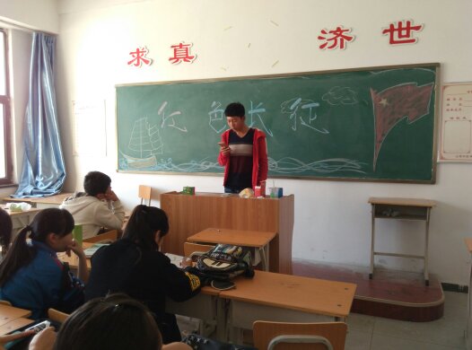 首先由团支书向大家简述长征的历史背景和持续时间。长征是老一辈中国工农红军在为抵抗日军侵略,在党和毛主席的领导下,粉碎敌人重重包围,进行的举世闻名的反侵略活动。之后,团支书向大家讲了几个老红军的长征故事,并把照片发给大家观看。那些刻满沧桑的面孔,都是曾亲历长征的老红军们,这些幸存下来的生命,早以成为我们民族的骄傲。