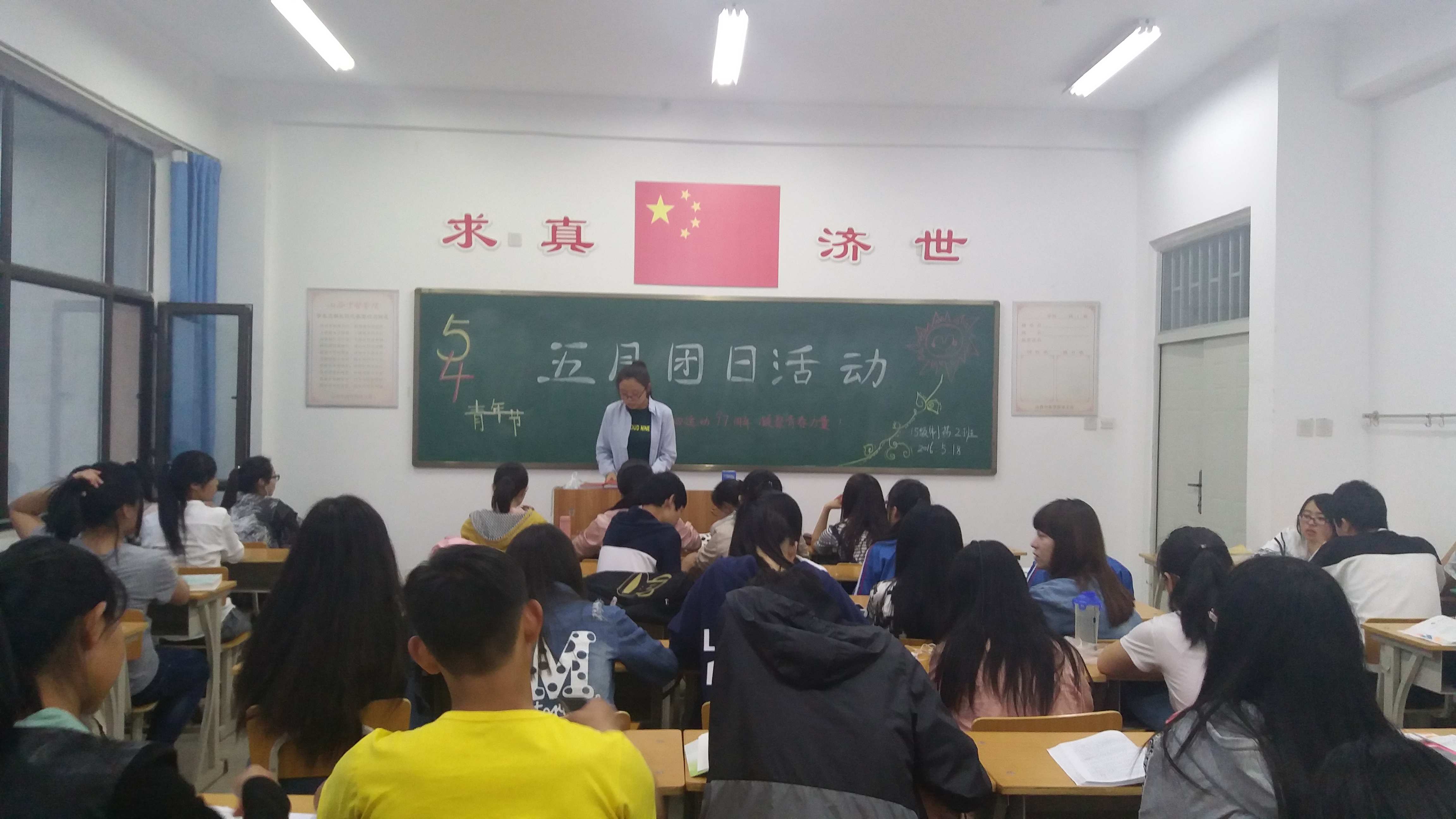 为庆祝建党95周年、五四运动97周年,继承和发扬五四精神,增强学子的责任意识,15级制药工程二班于5月19日在仁爱书院406教室举办关于“纪念五四运动,凝聚青春活力”的团日活动,参与本次活动的有制药二班的全体同学。