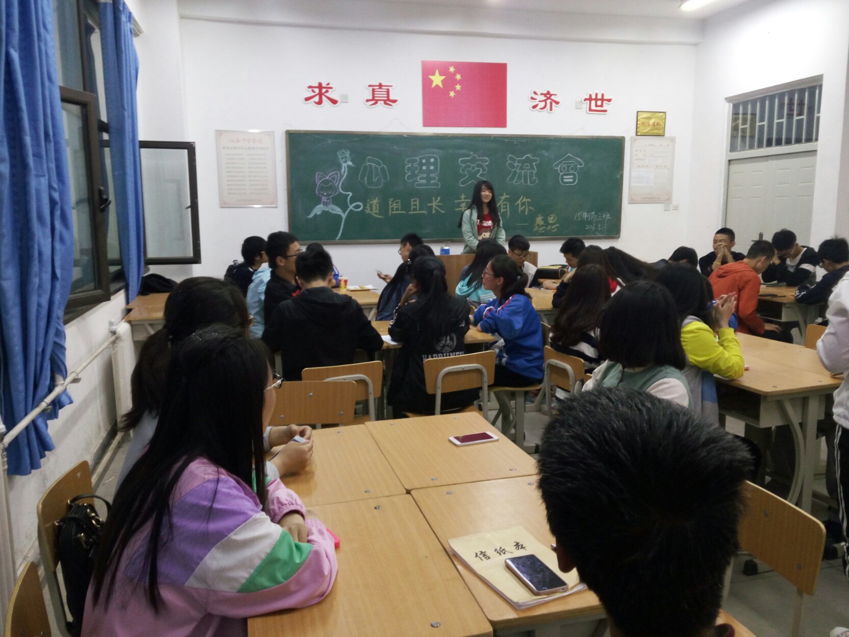 2016年5月3日,15级制药工程3班全体学生在仁爱书院406开展了以“道阻且长,幸好有你”为主题的心理活动。旨在让同学们学会感恩,对生活中帮助过自己的人抱有感谢之情并大声的说出来。让同学们在生活中能更好的帮助他人,让自己的生活充满色彩。