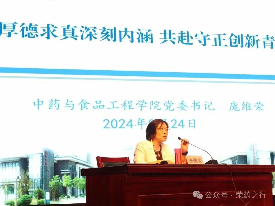 最后,党委书记庞维荣以“探索厚德求真深刻内涵,共赴守正创新新青年”为题做了新生入学教育第一课,强调新青年责任在肩,使命在胸,并为新青年提出了三点要求:“要努力做新时代具有伟大理想信念的爱国者,要做新时代德智体美劳全面发展的接班人,要做新时代弘扬中医药文化的传承者。”,同时希望他们在未来可以做新时代德智体美劳全面发展的合格接班人,将源远流长的中医药文化发扬光大,让中医药文化走向全世界。