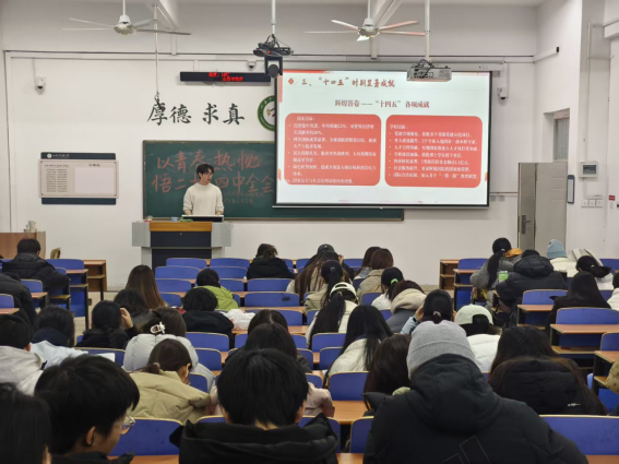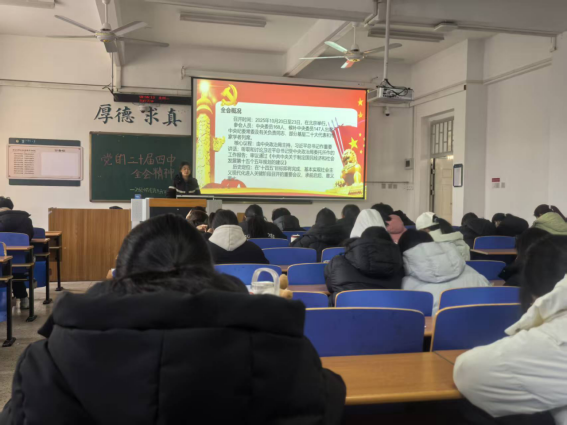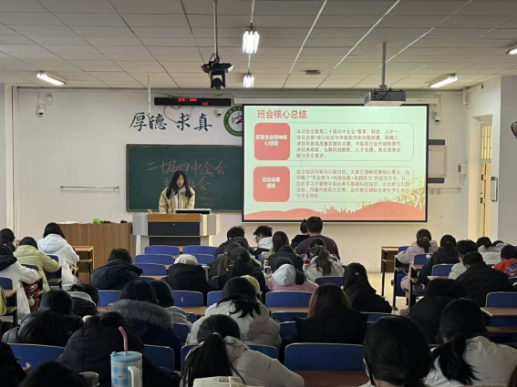 为深入学习贯彻党的二十届四中全会精神,引导全院师生准确把握全会核心要义与实践要求,切实把思想和行动统一到党中央决策部署上来,买球官网紧扣为党育人、为国育才根本使命,以主题班会、教室文化氛围布置、学生党员宣讲为主要形式,开展了一系列学习活动。