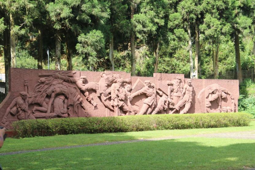 全木质结构的“红光医院”旧址,杉树皮屋顶、中廊式布局、带阳台的设计,藏着当年红军的智慧;“碧血丹心”浮雕上,红军战士变形八角帽下的坚毅,令人动容,粗糙石面刻满“艰苦奋斗”的重量。