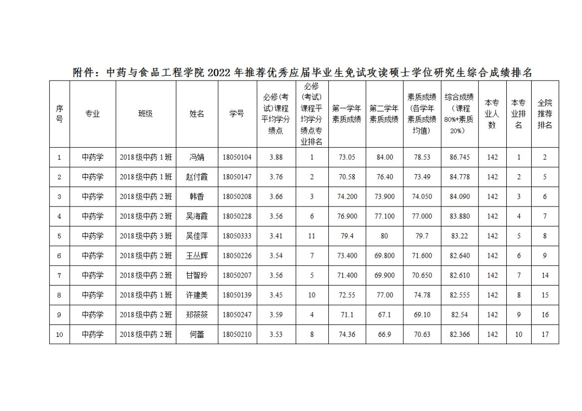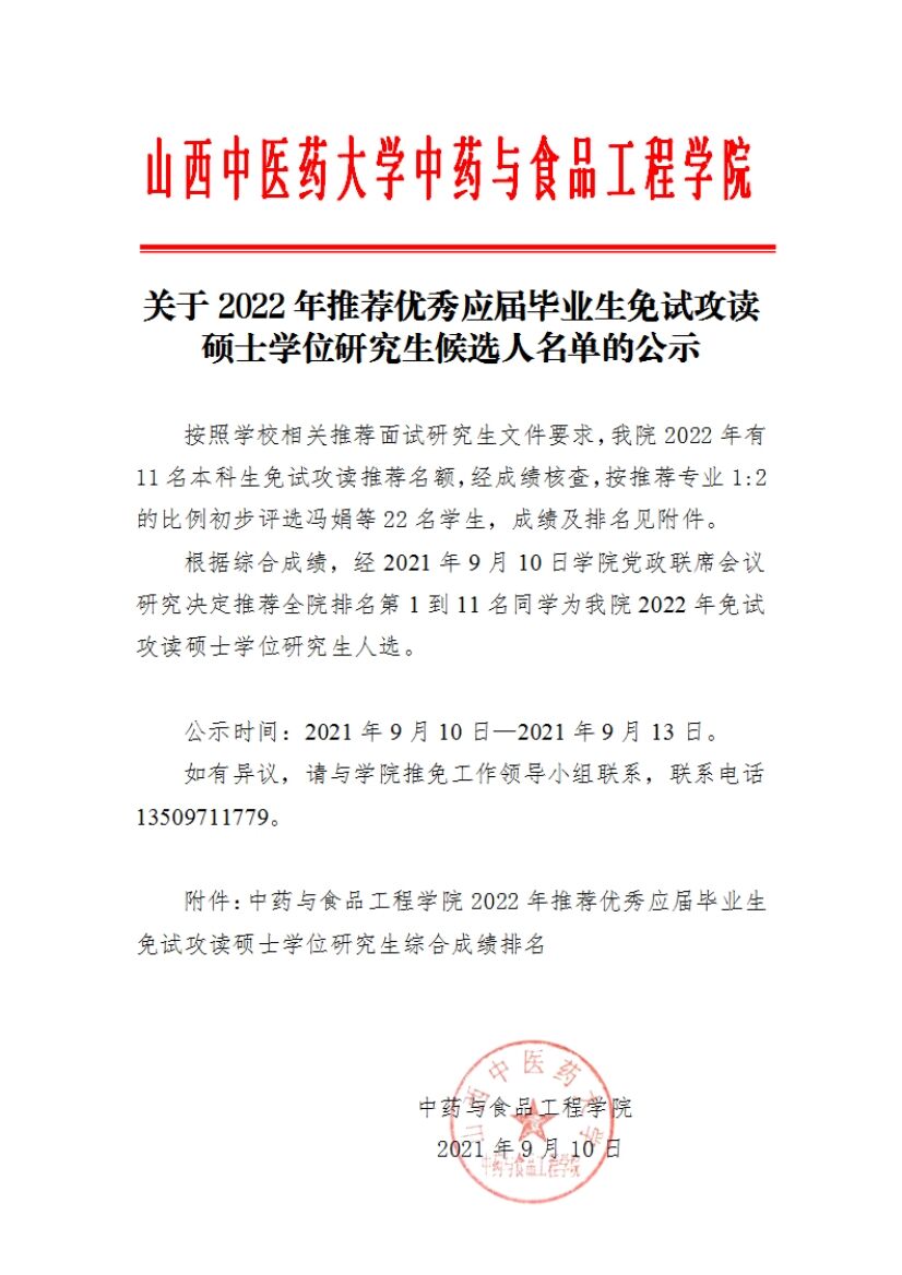 关于2022年推荐优秀应届毕业生浼试攻读硕士学位研究生候选人名单的公示