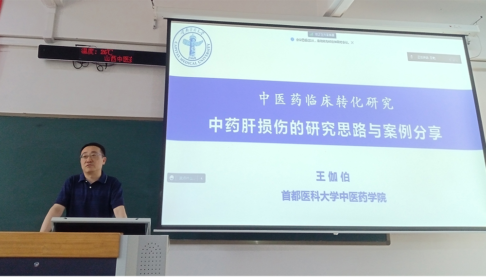 6月9日,买球官方网站邀请首都医科大学中医药学院院长王伽伯教授,开展了题为《中医药临床转化研究——中药肝损伤的研究思路与案例分享》的学术讲座。院长张朔生主持,专任教师及研究生140余人参加。