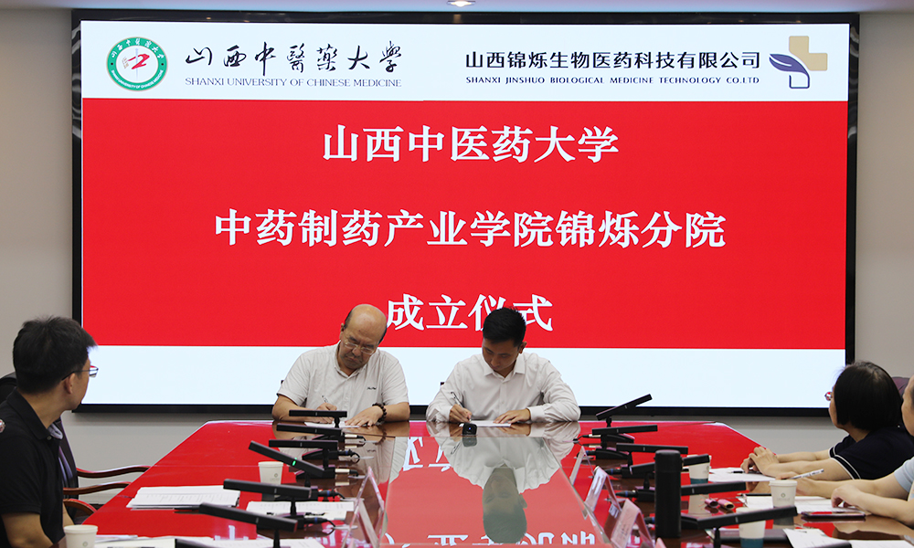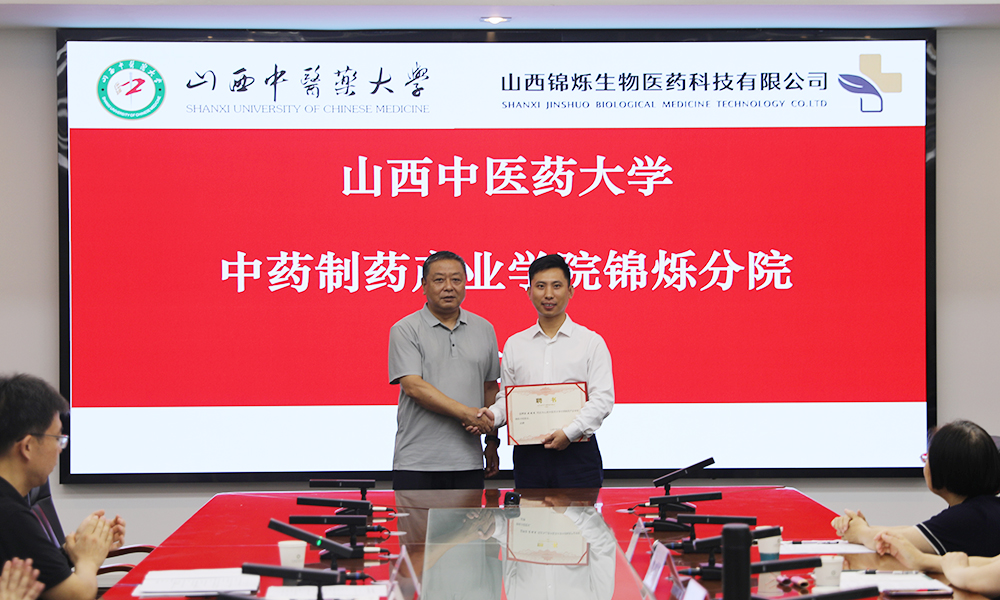 8月20日上午,买球官方网站中药制药产业学院锦烁分院成立仪式暨产教融合论坛在叔和厅举行。晋中市政府副秘书长邵刚、晋中市市校协同工作专班负责人毋清威,买球官方网站党委委员、发展规划处处长仇志勇、教务处处长王军、买球官方网站院长张朔生、副院长杜晨晖、副院长裴科,山西锦烁生物医药科技有限公司(以下简称“山西锦烁”)总经理武瑞杰,技术委员会主任王春芳、罗晋萍、邓自新,山西食品药品质量控制产业学院客座教授李香串出席,买球官方网站各教研室主任、学生代表,山西锦烁各部门负责人参加。
