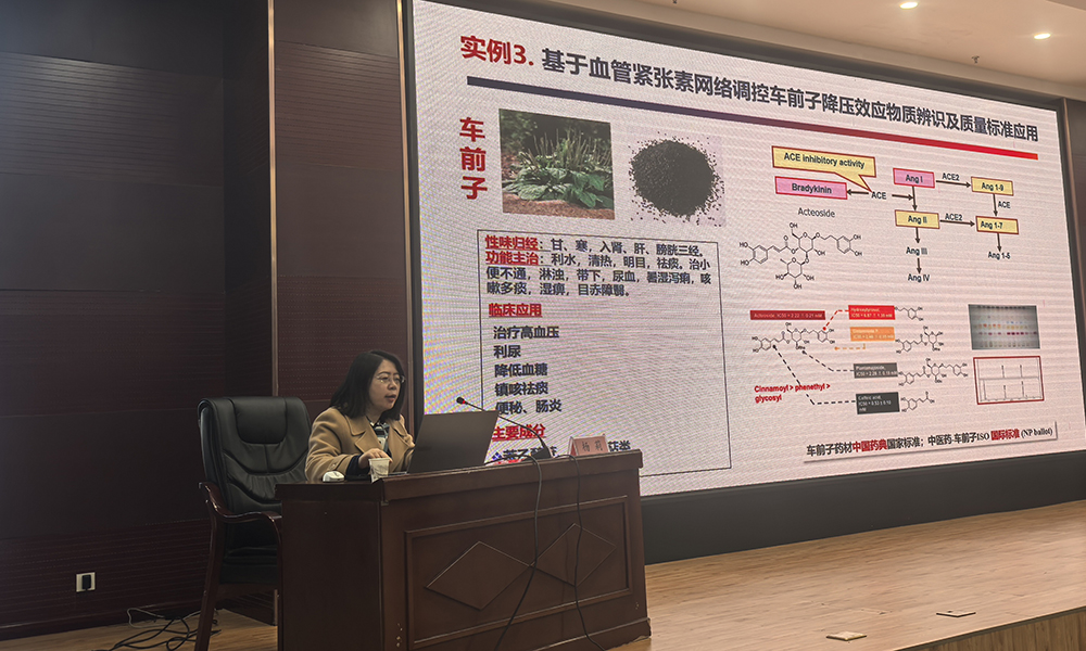 杨莉教授以“中药质量标准研究策略与应用”为题,介绍了通过构建多元分析创新技术平台,实现中药复杂体系精准解析的思路,为教师和学生在新技术方面的应用提供了思路。