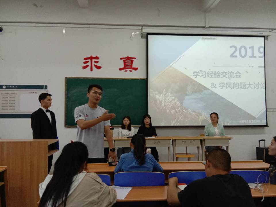 2019年5月16日晚六点三十分,买球官网于和剂书院110教室举行了“学习经验交流会,学风问题大讨论”的交流活动。出席此次交流会的有制药与食品工程学院孟哲老师,学生会主席、副主席及各部部长,15级成功考研到心仪大学的吴文辉、祁鸽、赵倩男以及17级张钰笛和各级班级代表。