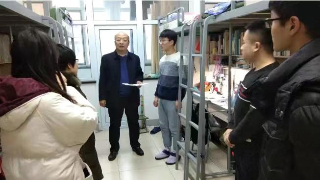 根据学校的安排部署,为给寒假留校学生营造安全健康的学习、住宿环境,买球官方网站党委副书记梁峰岗、分团委书记王晓英于1月15日下午走访了留校学生的宿舍、实验室等,开展了安全排查、关心慰问活动。
