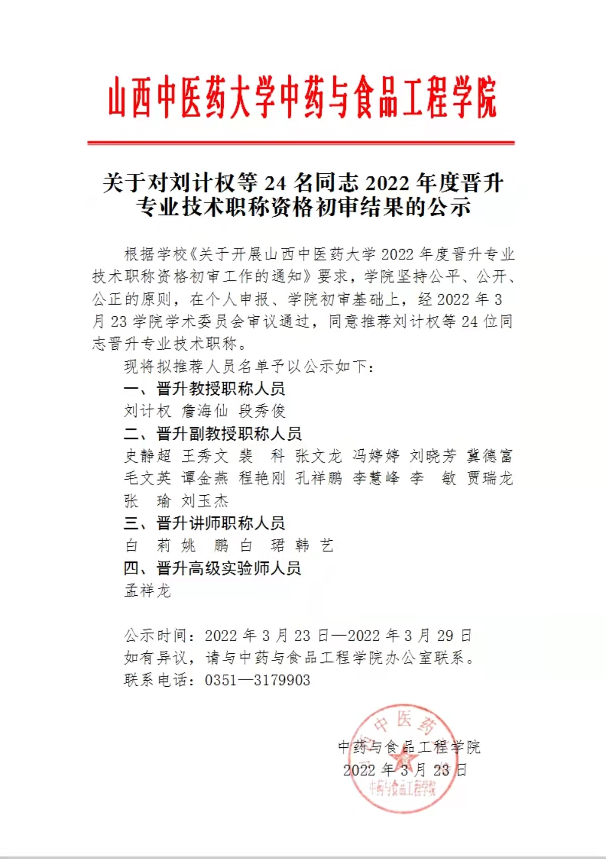 买球官方网站关于对刘计权等24名同志2022年度晋升专业技术职称资格初审结果的公示