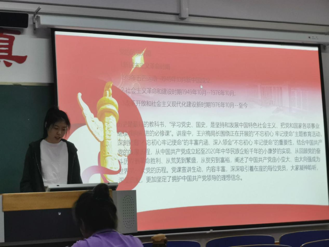 本次团日活动由第六团小组承办。活动中,围绕着为什么要学习党史、党的历史分期为话题展开。并深入展开说明我们大学生在日常的学习和生活中,如何学党史、强信念、跟党走。激励同学们要肩负历史使命,坚定前进信心,立大志、明大德成大才、担大任,努力成为堪当民族复兴重任的时代新人让青春在为祖国、为民族、为人民为类的不懈奋斗中绽放绚丽。