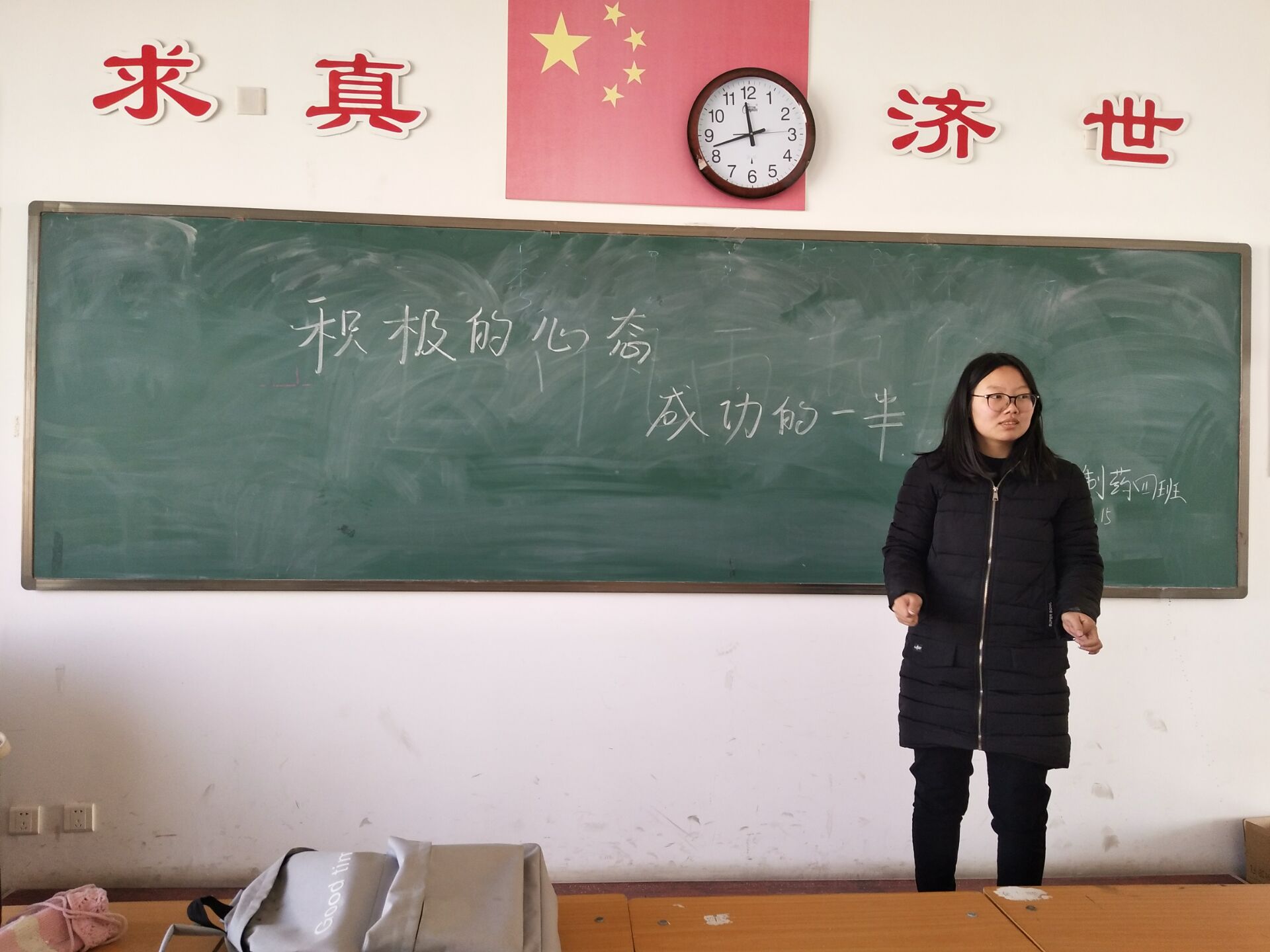 2017年12月25日,15级制药工程四班于仁爱书院甲座408教室举办了“积极的心态,成功的一半”主题心理活动。会议由心理委员主持,15级制药工程四班全体成员均参加了此次活动。