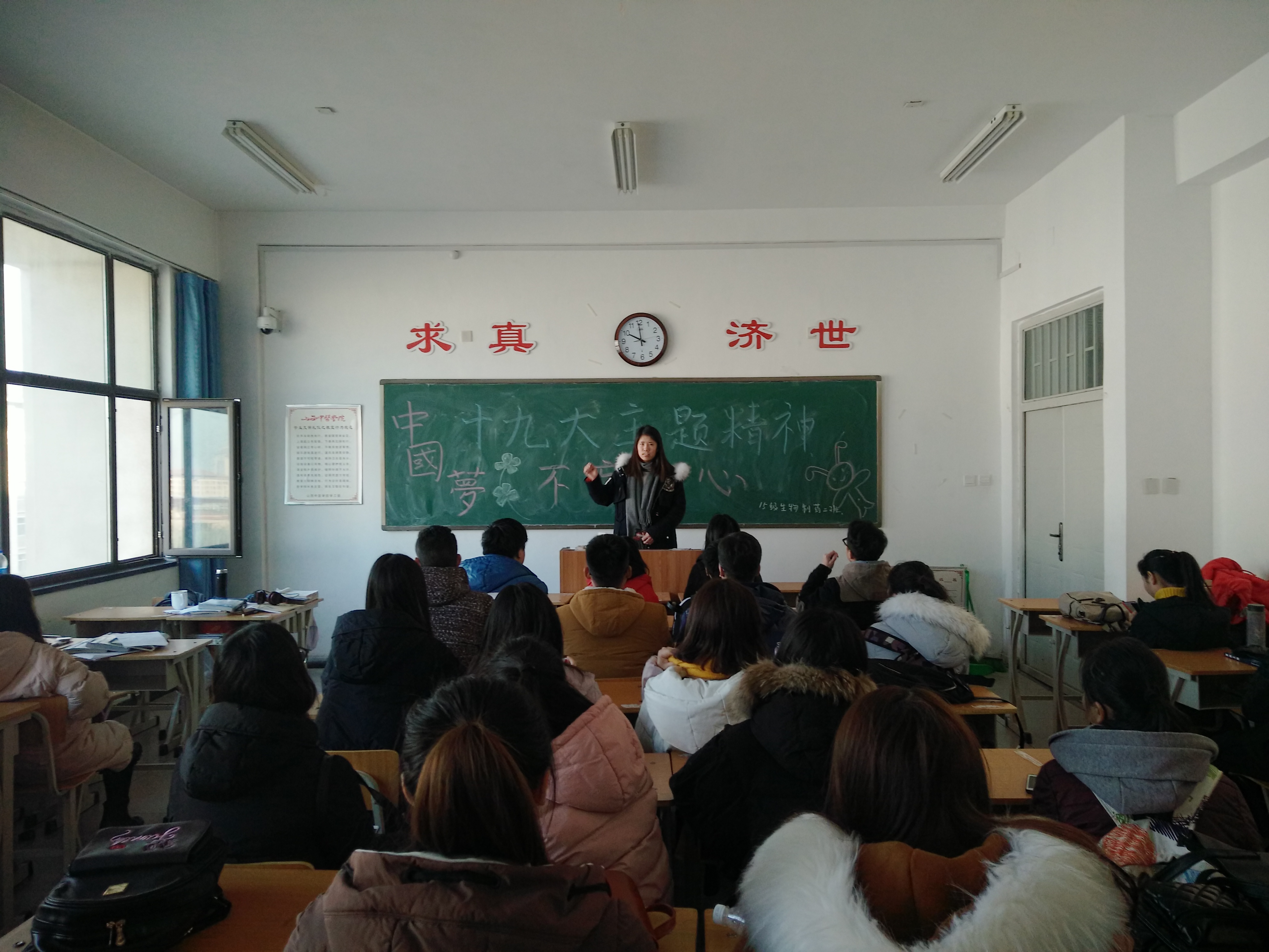 为学习贯彻落实党的十九大精神,加强同学们对党的认知,弘扬社会主义核心价值观,提高同学们的爱党爱国热情,本班于2017年12月19日在仁爱书院410教室开展“学习党的十九大主题精神”主题团日活动。活动由团支书宋秋红主持,本班全体同学共同参与。