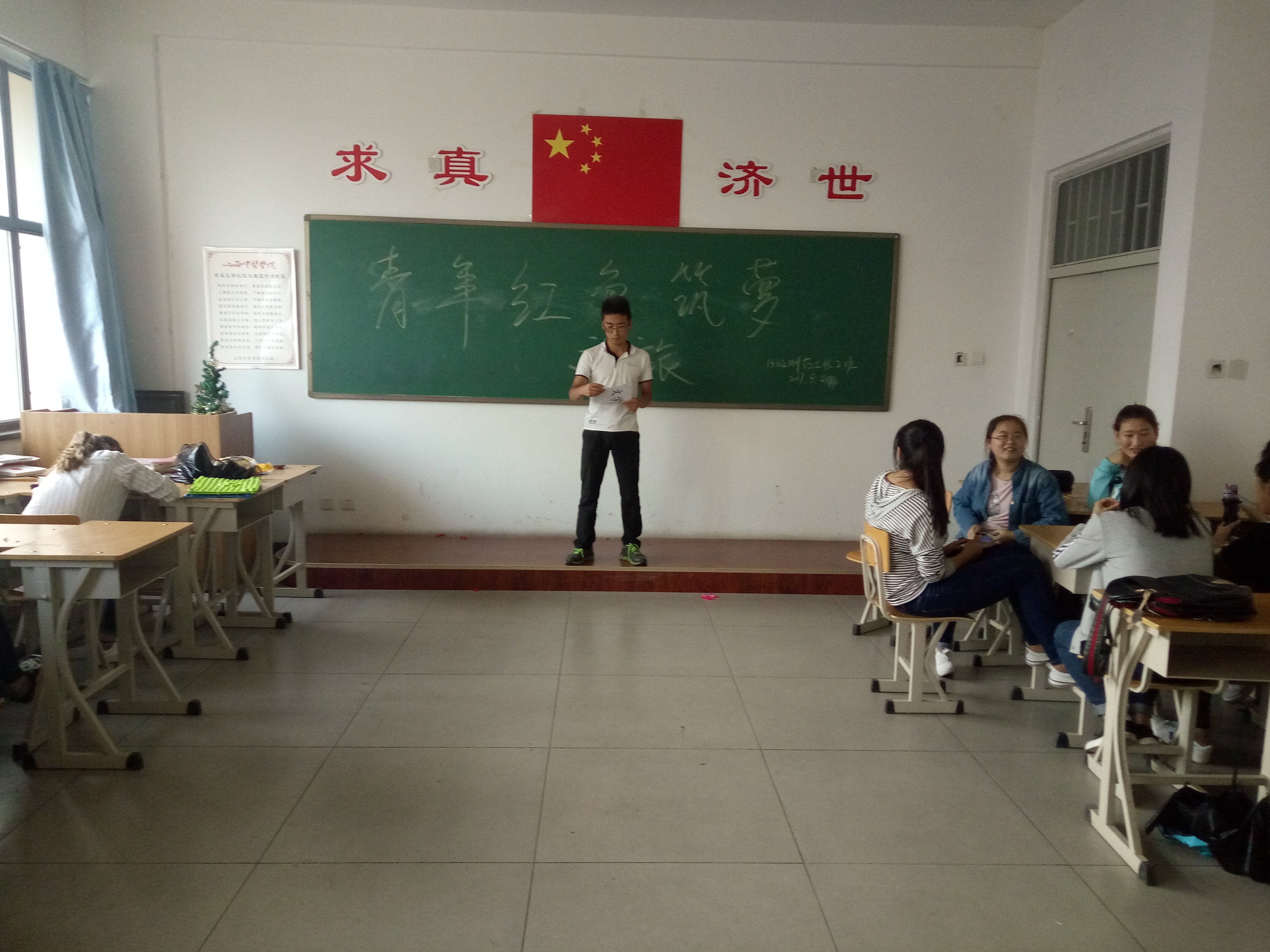 为深入贯彻落实团省委《关于组织全省大学生深入学习宣传习近平总书记给第三届中国互联网+大学生创新创业大赛“青年红色筑梦之旅”大学生回信精神的通知》精神,切实引导和帮助青年学生以习近平总书记系列重要讲话精神为根本遵循,组织引导团员青年深入学习回信的精神实质和丰富内涵,准确把握当代青年肩负的历史使命和成长发展的正确道路,自觉把激昂的青春梦融入伟大的中国梦,永远紧跟党高举中国特色社会主义伟大旗帜,以奋发向上的精神状态和更加优异的工作成绩迎接党的十九大胜利召开,15级制药工程二班于2017年9月24日在仁爱书院405教室开展以学习习近平总书记给第三届中国互联网+大学生创新创业大赛“青年红色筑梦之旅”大学生回信精神重要讲话为主题的团日活动。