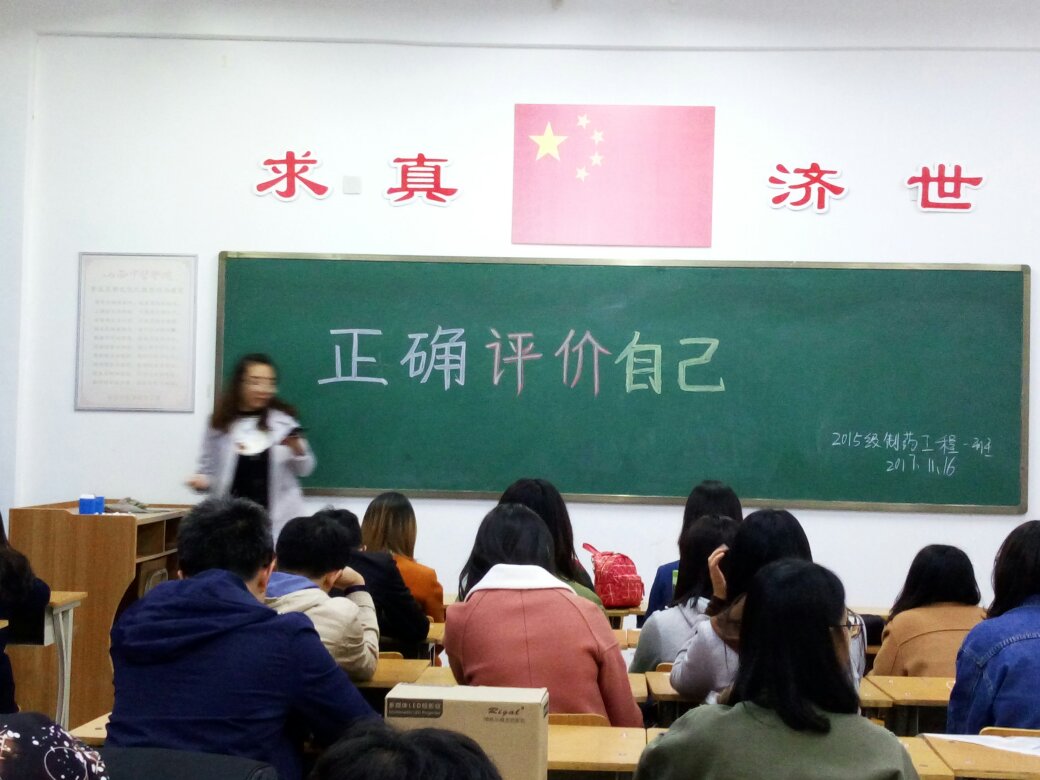 2017111615级制药工程一班于仁爱书院408教室举办以正确评价自己为主题的心理活动,全班同学按时到场,宣传委员提前最好宣传工作,本次活动由心理委员主持。