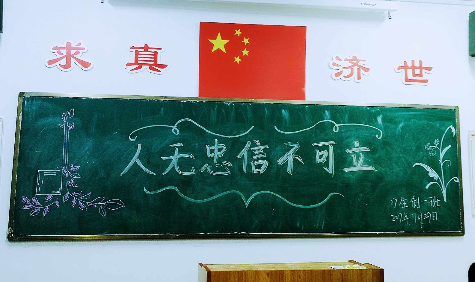 为传承中华民族传统美德,增强班级内部成员的凝聚力,提高日常工作的效率,帮助同学们增强明辨是非的能力,2017级生物制药1班于11月29日晚7时30分在和剂书院甲座203教室举办了以“人无忠信而不立”为主题的心理活动。本次心理活动由心理委员李亚娟主持,组织委员姬秋月、生活委员陈婧协助,生制全体同学集体参与。