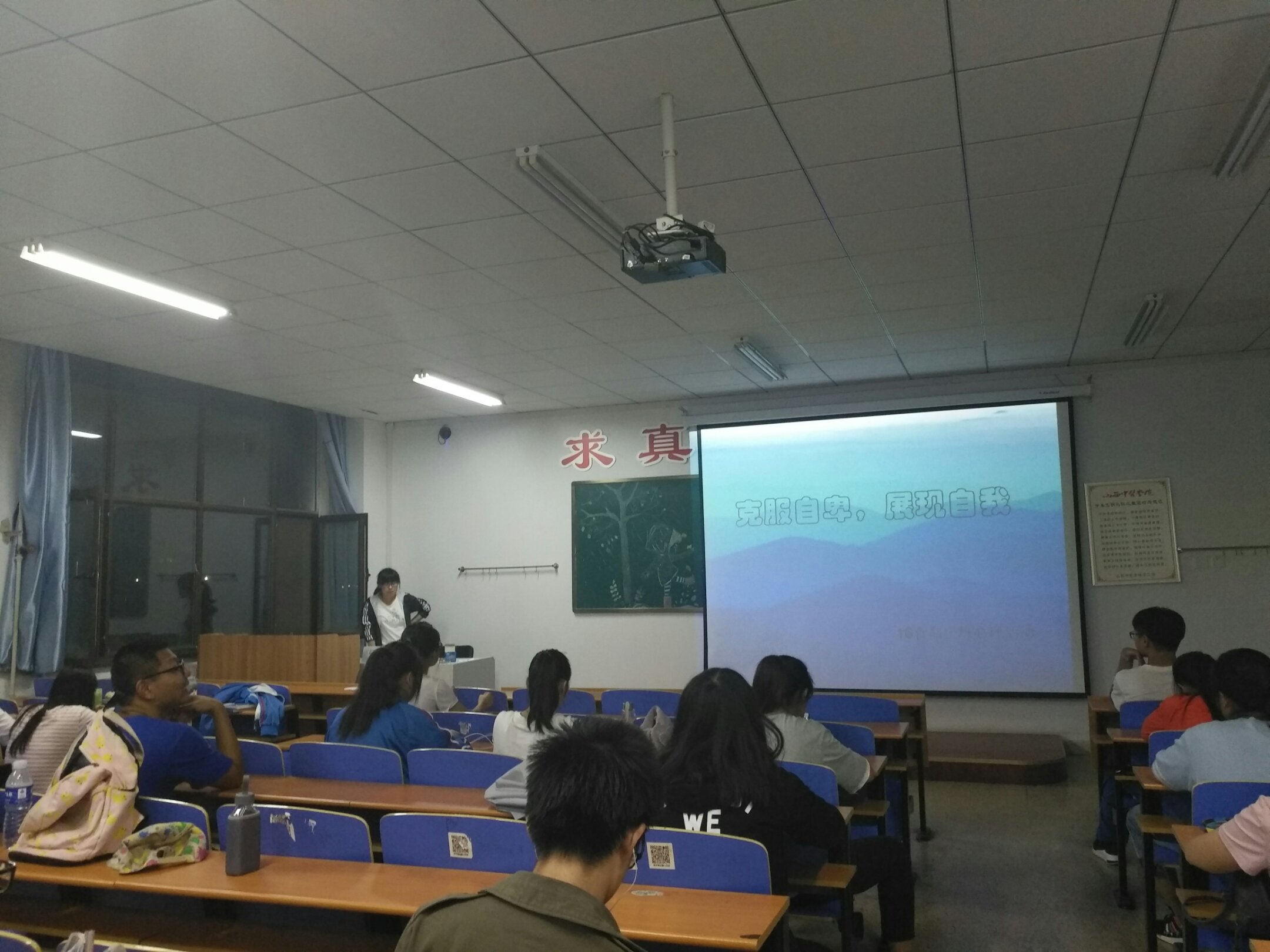16级食品科学与工程一班全体同学于2017年912晚上730分在和济书院甲座320教室开展以“克服自卑,展现自我”为主题的心理活动,旨在通过此次心理活动,使同学们懂得展现自我,学会宽容谦和的态度与人相处,克服自卑,善于表现自己。本次心理活动由李鹏霞同学主持。