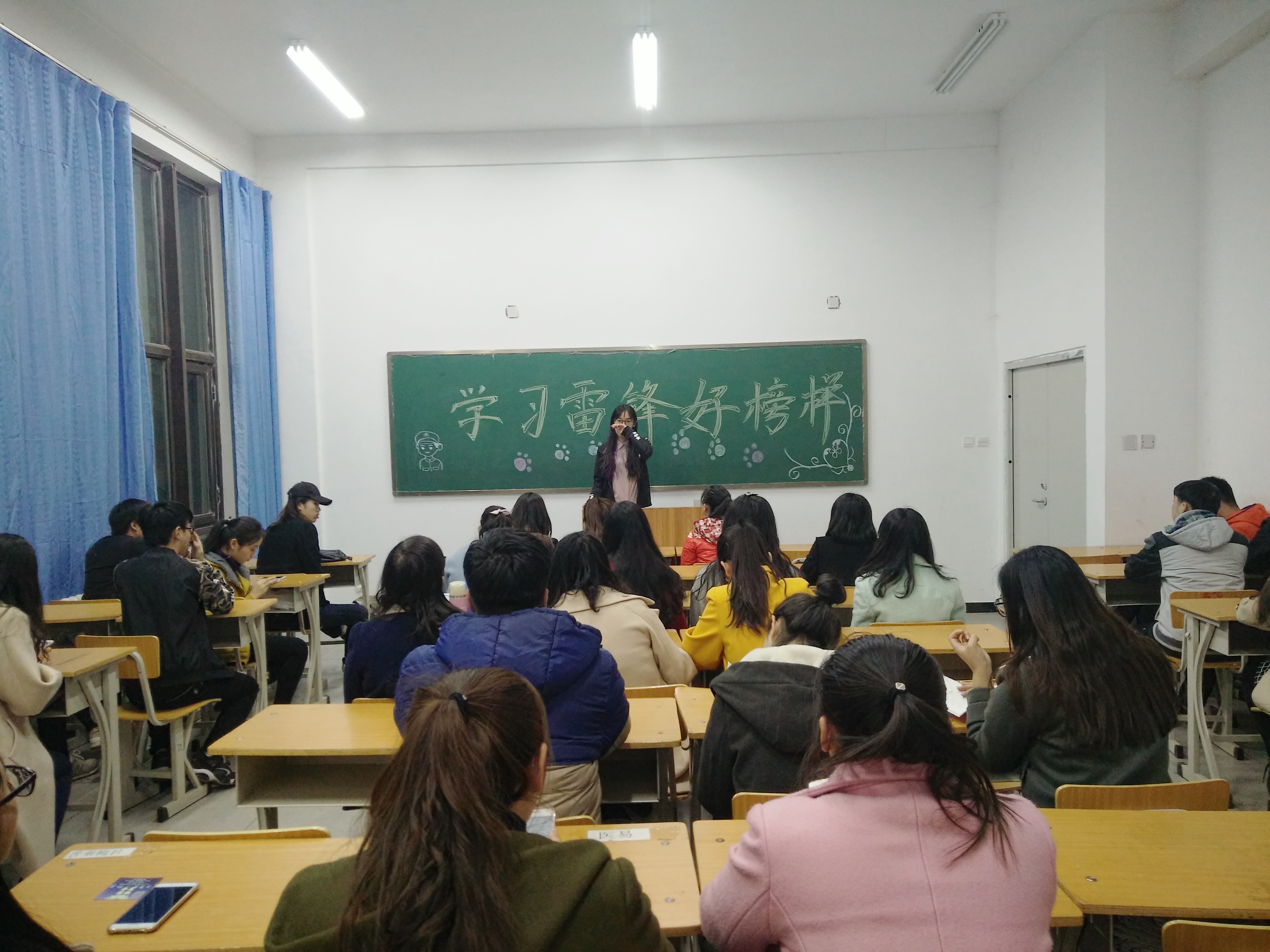为了响应团支部的号召,加强学习“雷锋精神”真诚服务同学,我班于2017年3月3日在仁爱书院108室开展学习“与时代同行,雷锋精神在身边”活动,主题为“学习雷锋好榜样”,本次活动由团支书宋秋红主持,本班全体成员参加。