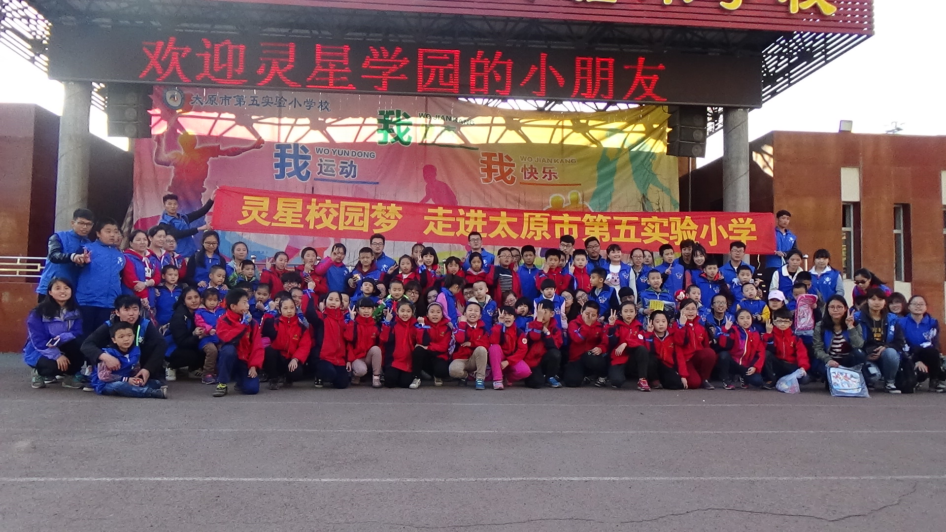 随后,在志愿者的照顾下,孩子们安全的到达太原第五实验小学与小学生进行交流实践,受到小学同学们的热烈欢迎。在那里,孩子们与小学老师一起表演手语,在音乐教室与小学生们一起唱歌打鼓,在操场一起手拉手做游戏,使孩子们与正常孩子交融在一起并体会他们的生活,现场欢笑声一片。欢乐的时光总是过的很快,分离悄无声息地到来。太原市第五实验小学的孩子们发挥自己的想象力与动手能力,亲自为灵星这些天使孩子做了一份份充满爱与希望的礼物,并亲手送给他们,而我们的星星孩子以蓝丝带为礼物献给第五实验小学的同学们。此刻幸福洋溢在每个人参与人的脸上。